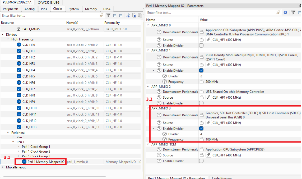 - Under Clocks tab in the Peri1 Memory MappedIO (#3.1).