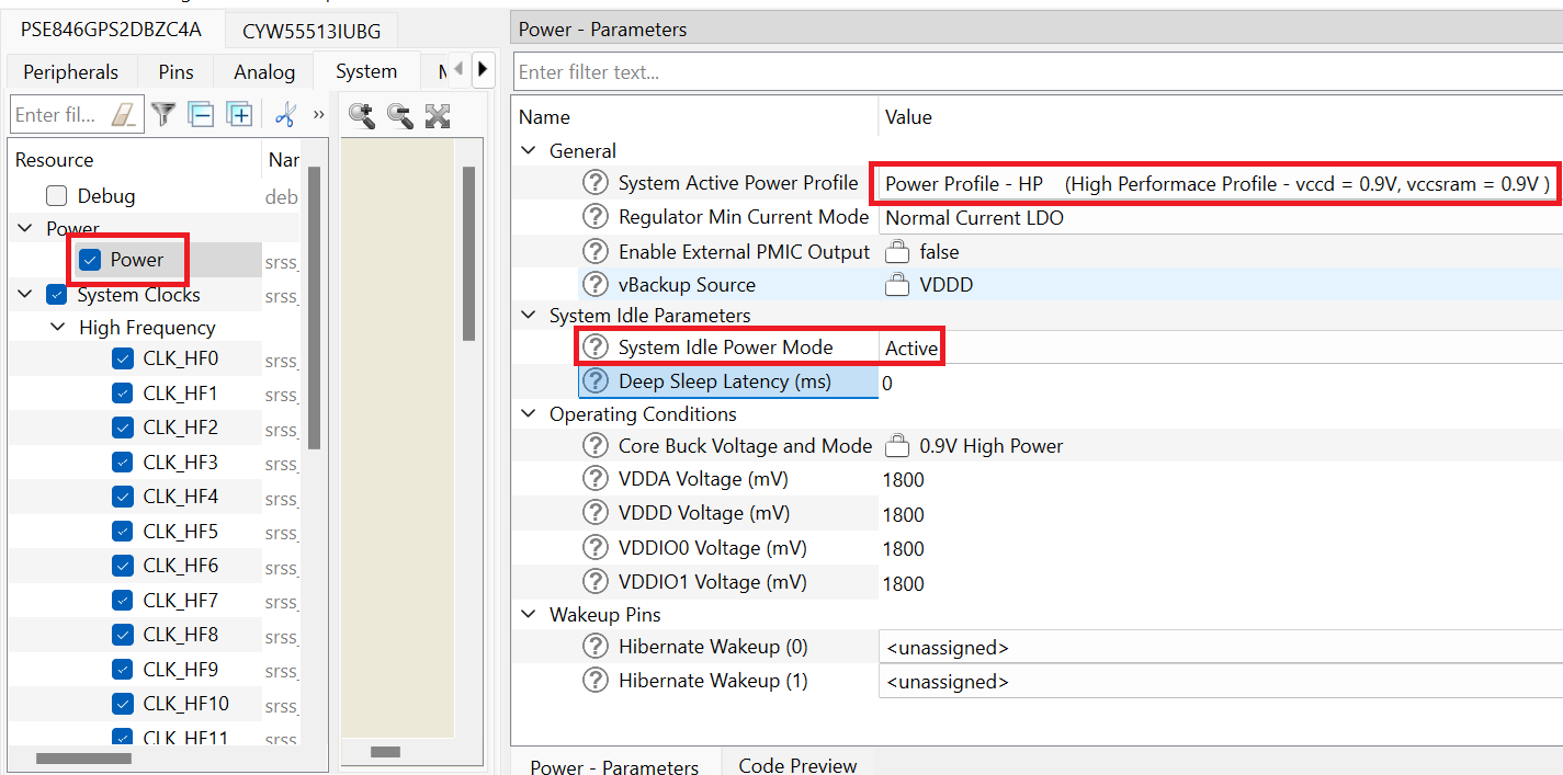 - If the Power personality is enabled, the System Idle Power Mode must be Active or CPU Sleep, and the HP profile is selected for System Active Power Profile.