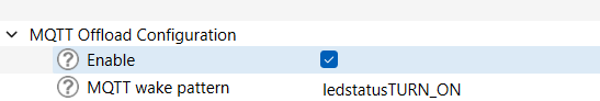- MQTT keepalive offload Improves the power consumption of the host MCU by offloading MQTT keepalive functionality to WLAN firmware.