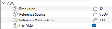The ADC DMA functionality is enabled by checking the "Use DMA" checkbox in the "ADC" subgroup of the MCDI configurations.