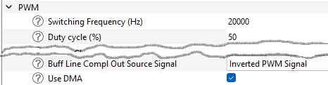 The Modulator DMA functionality is enabled by checking the "Use DMA" checkbox in the "PWM" subgroup of the MCDI configurations.