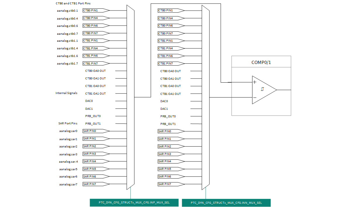 For configuration settings, see cy_stc_autanalog_ptcomp_comp_dyn_t and cy_stc_autanalog_stt_ptcomp_t structures.
