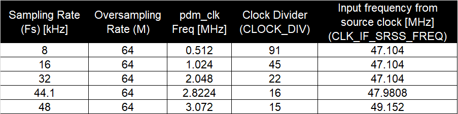 CLK_IF_SRSS_FREQ = (CLOCK_CTL.CLOCK_DIV + 1) * M * Fs