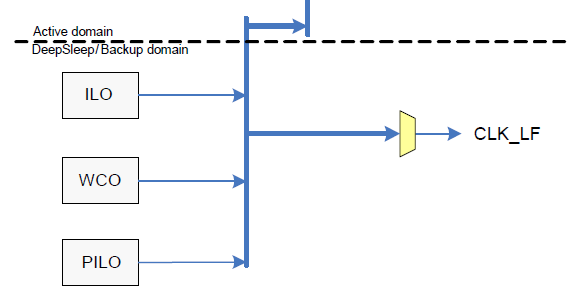 It is the primary clock source for the backup domain clock, which is used by the real-time clock (RTC). The WCO can also be used as a source for the low-frequency clock to support other low power mode peripherals.