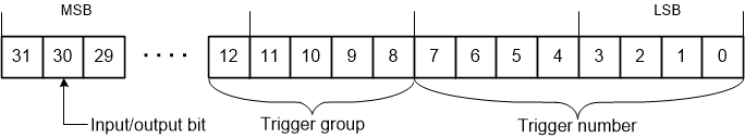 There are two types of TrigMux signal definitions in the device configuration header: 1) The parameters for the trigger interconnection system input signals. 2) The parameters for the trigger interconnection system output signals. Also there are separate groups of trigger multiplexer input/outputs and groups of trigger one-to-one line input/outputs.